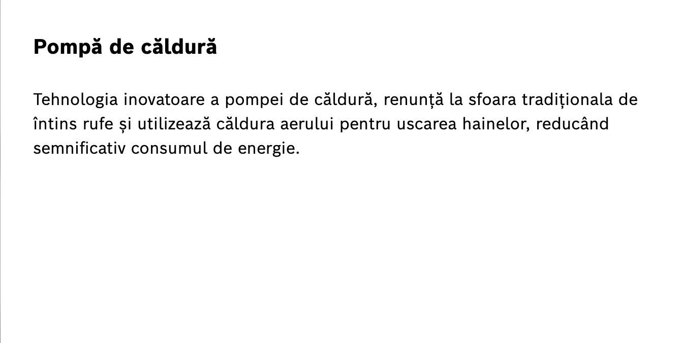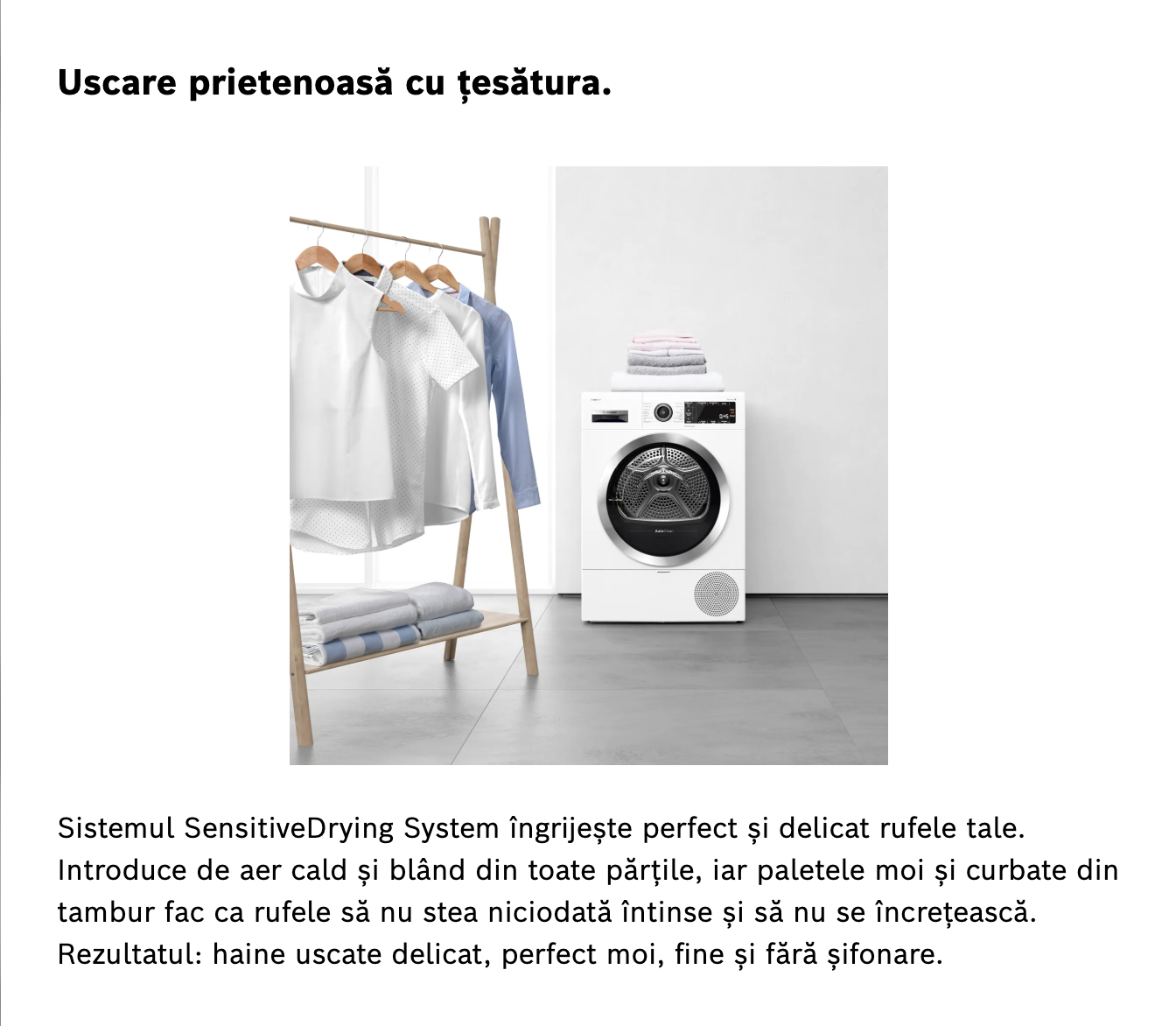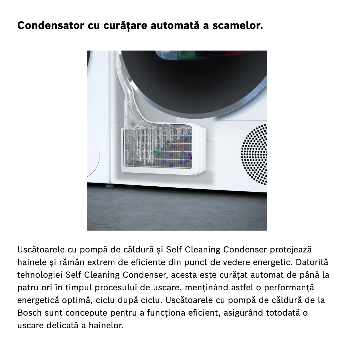 Bosch WQG14501BY Seria 6 Uscător de rufe cu condensare și pompă de căldură 9 kg 800 € ~ 15925 Lei În stoc Adaugă în coș Comandă prin telegram Caracteristici:Tip uscarePompă de căldură (+>50% eficientă)