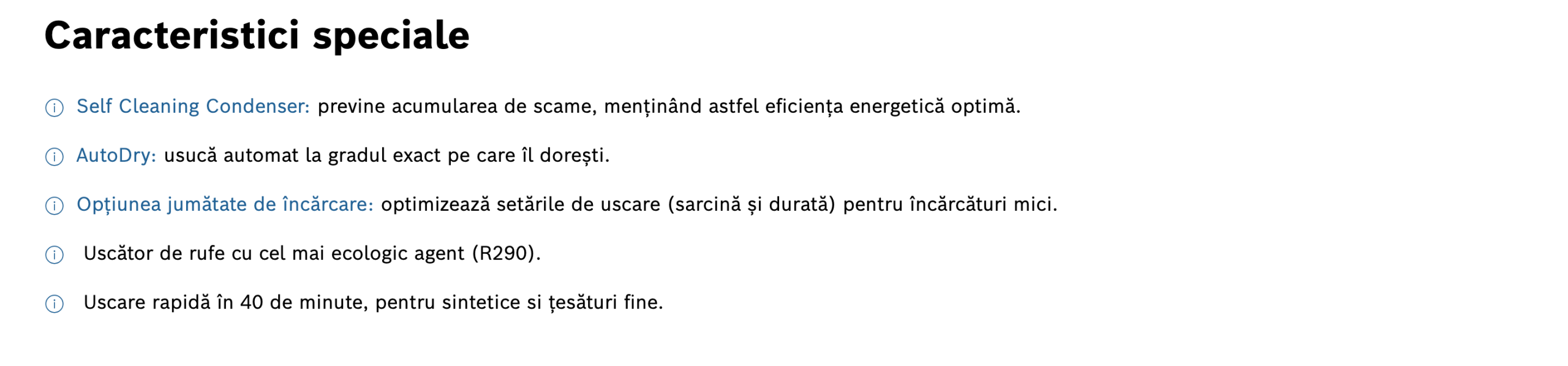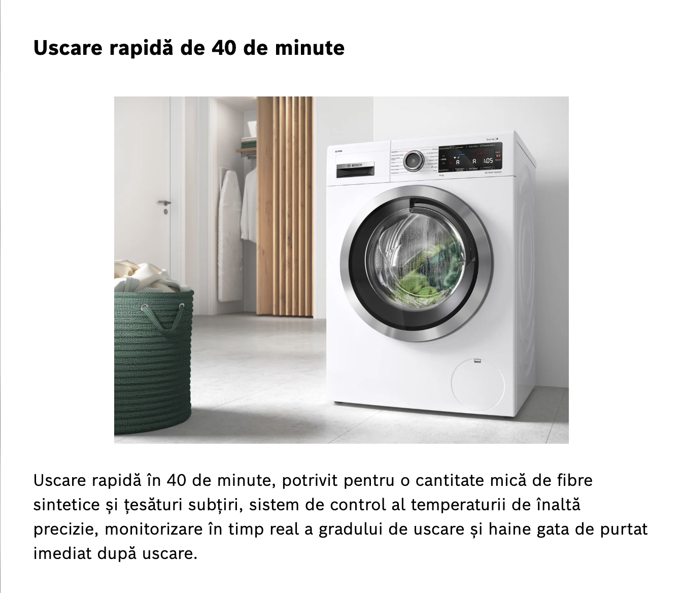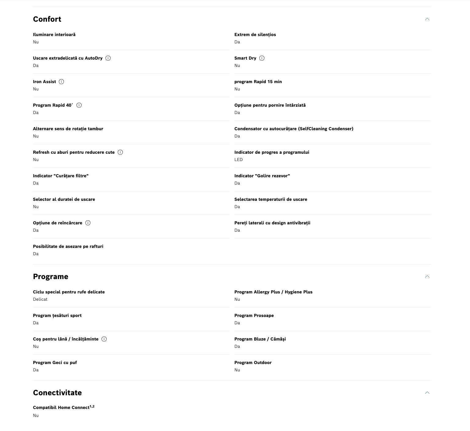 Bosch WQG14501BY Seria 6 Uscător de rufe cu condensare și pompă de căldură 9 kg 800 € ~ 15925 Lei În stoc Adaugă în coș Comandă prin telegram Caracteristici:Tip uscarePompă de căldură (+>50% eficientă)