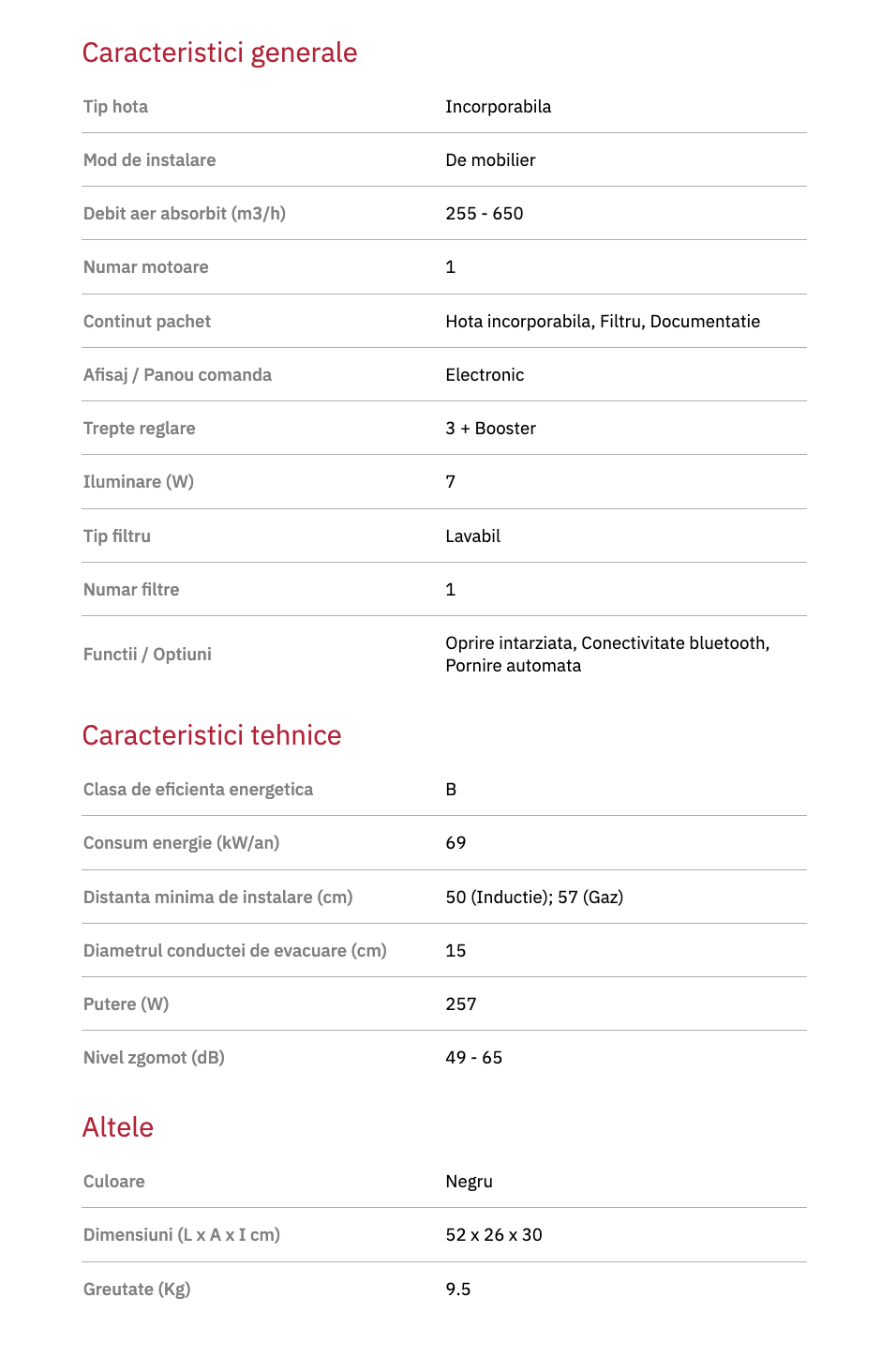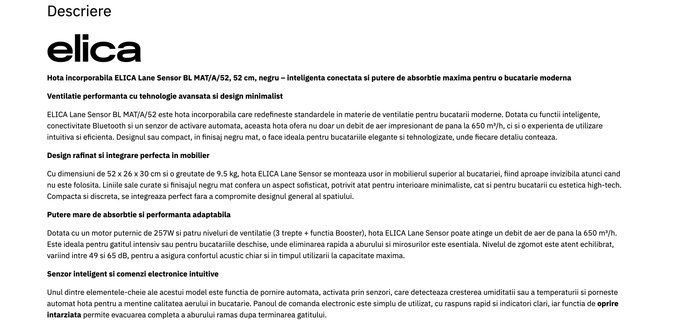 Hota incorporabila ELICA Lane Sensor BL MAT/A/52