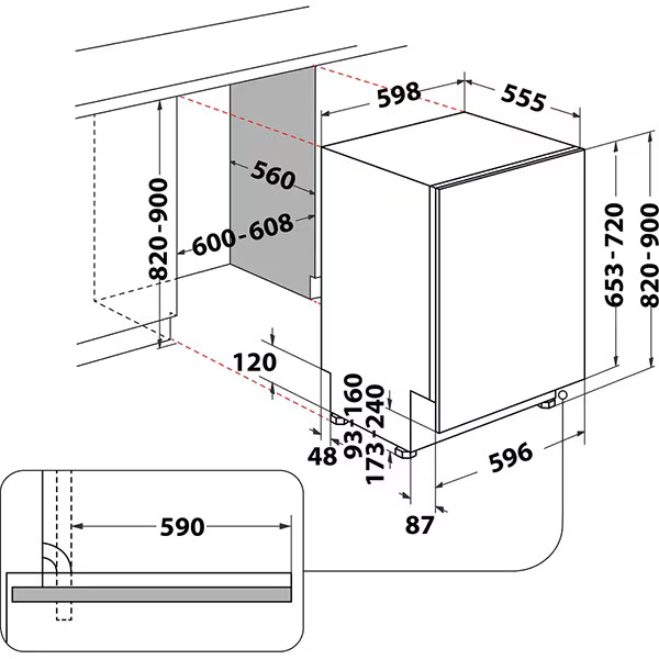 Masina de spalat vase incorporabila 60cm WHIRLPOOL WIC 3C33 PFE